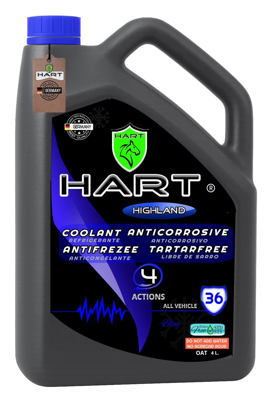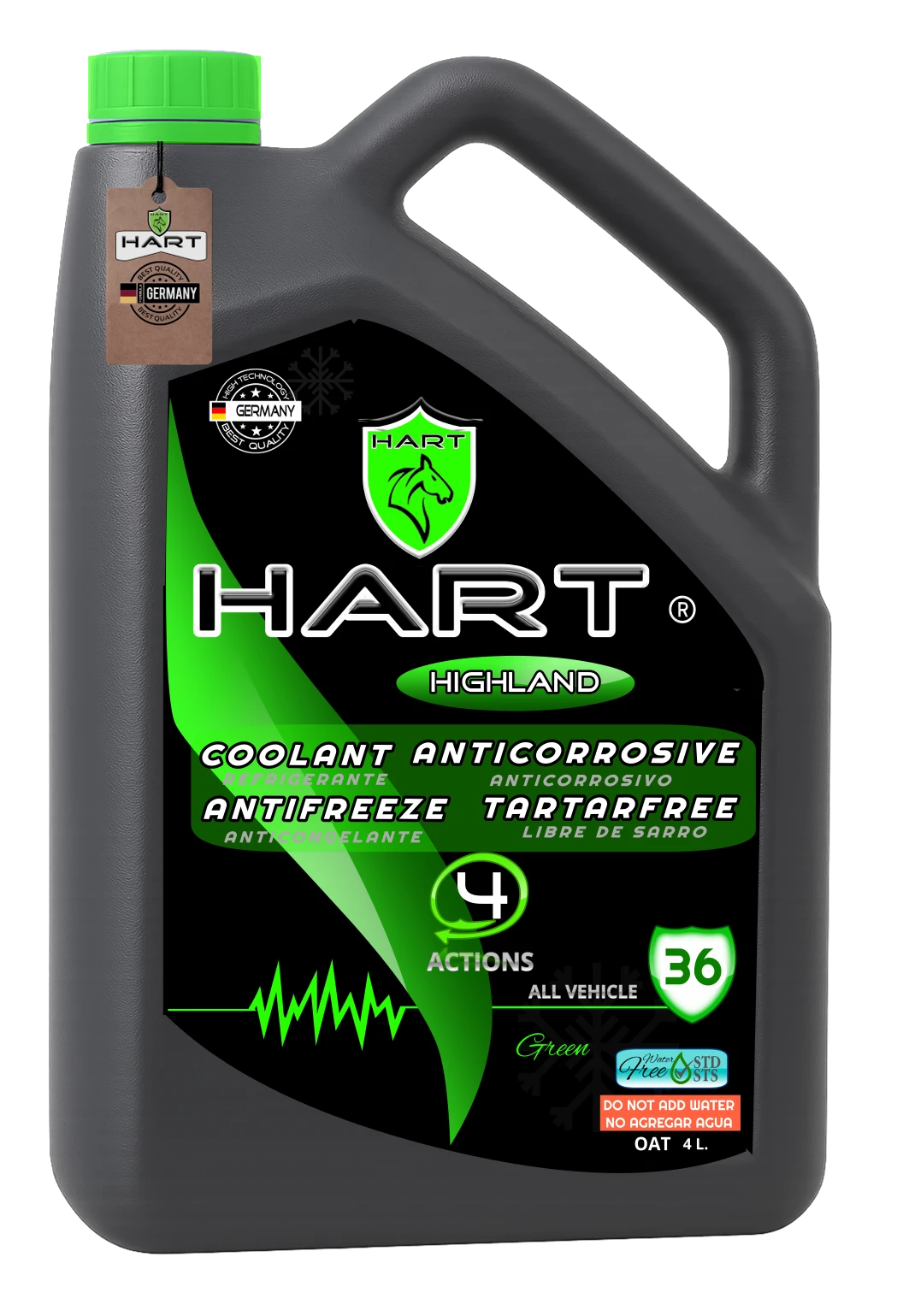 Descubre el HART® MULTICLIMATE 36, un refrigerante multimarca de alta calidad diseñado para satisfacer las necesidades de todo tipo de vehículos. Este producto ofrece 4 acciones en 1: Refrigerante, Anticongelante, Antioxidante y Antisarro. Compatible con motores de cualquier tipo de material, incluyendo acero, hierro fundido, aluminio y más, garantizando un rendimiento óptimo y protección duradera.